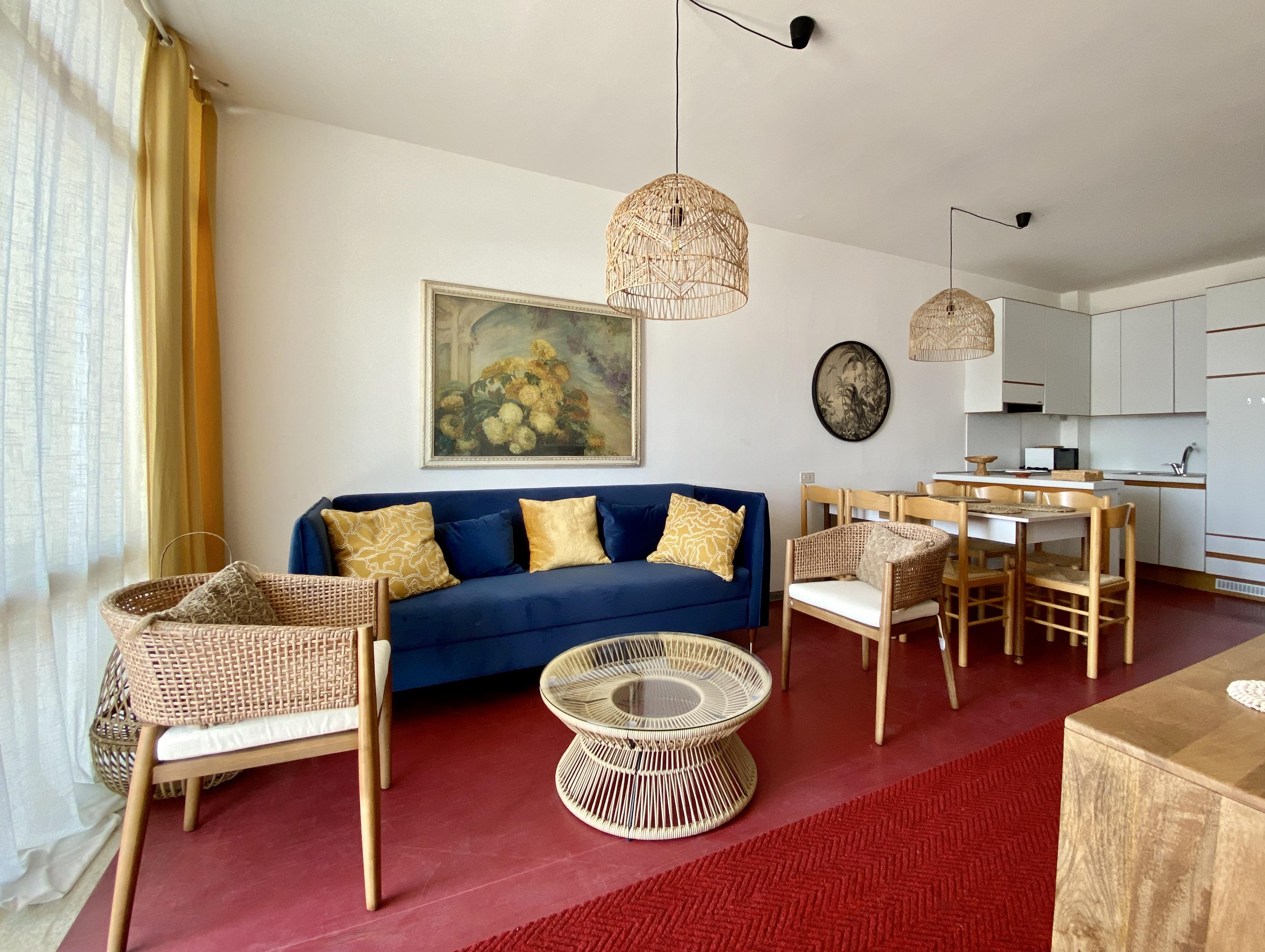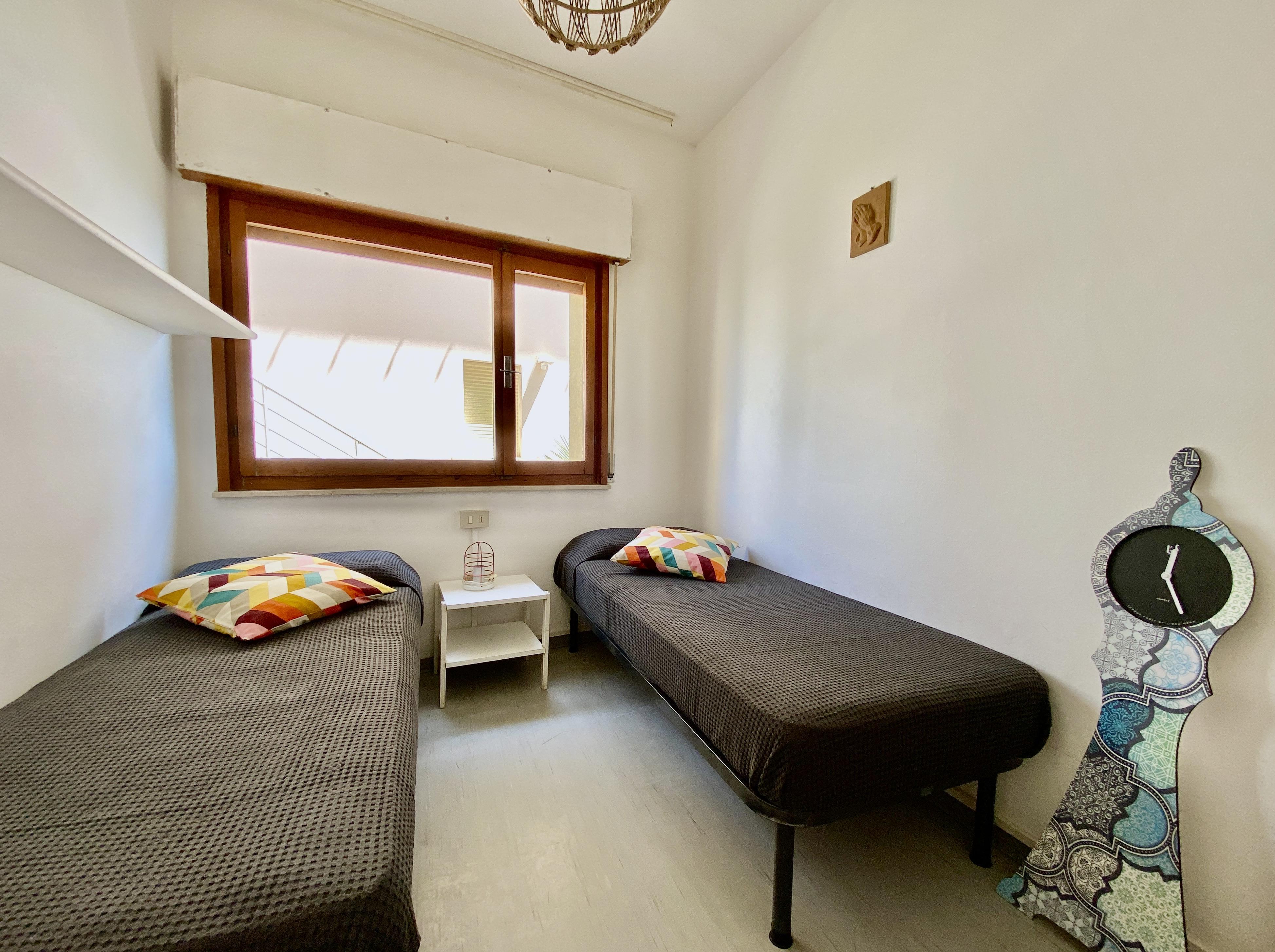 Large apartment located on the mezzanine floor composed of a living room with kitchenette, a double bedroom, a bedroom with three single beds, a bedroom with two single beds, a bathroom with tub/shower, large seafront terrace equipped with table and chairs. Apartment with reserved parking space and washing machine. With air conditioning. CIN CODE: IT030049C268HWTO4Q